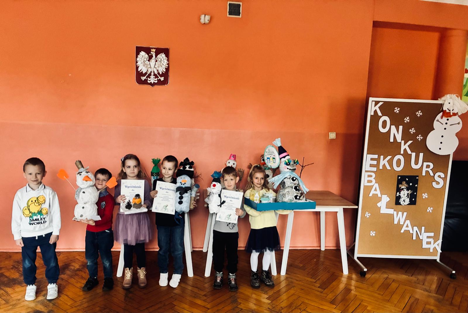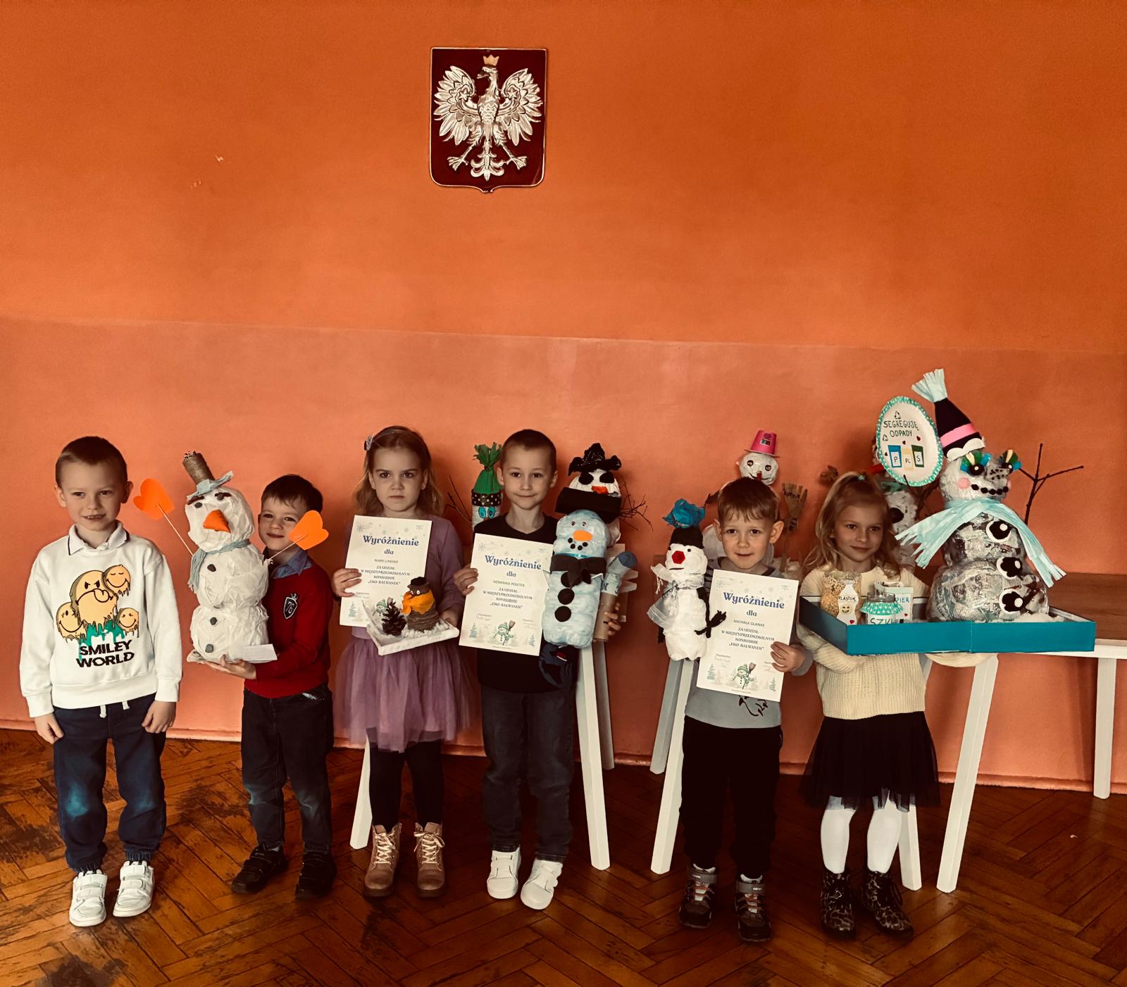 Dnia 17.03.2026r w naszej szkole odbyło się podsumowanie Międzyprzedszkolnego Konkursu ,, Eko – bałwanek”. Głównym celem konkursu była popularyzacja idei recyklingu, kształtowanie postaw proekologicznych, rozwijanie twórczego myślenia. Uczestnicy tworzyli bałwanki z materiałów odpadowych (plastik, papier, nakrętki), rozwijając wyobraźnię
