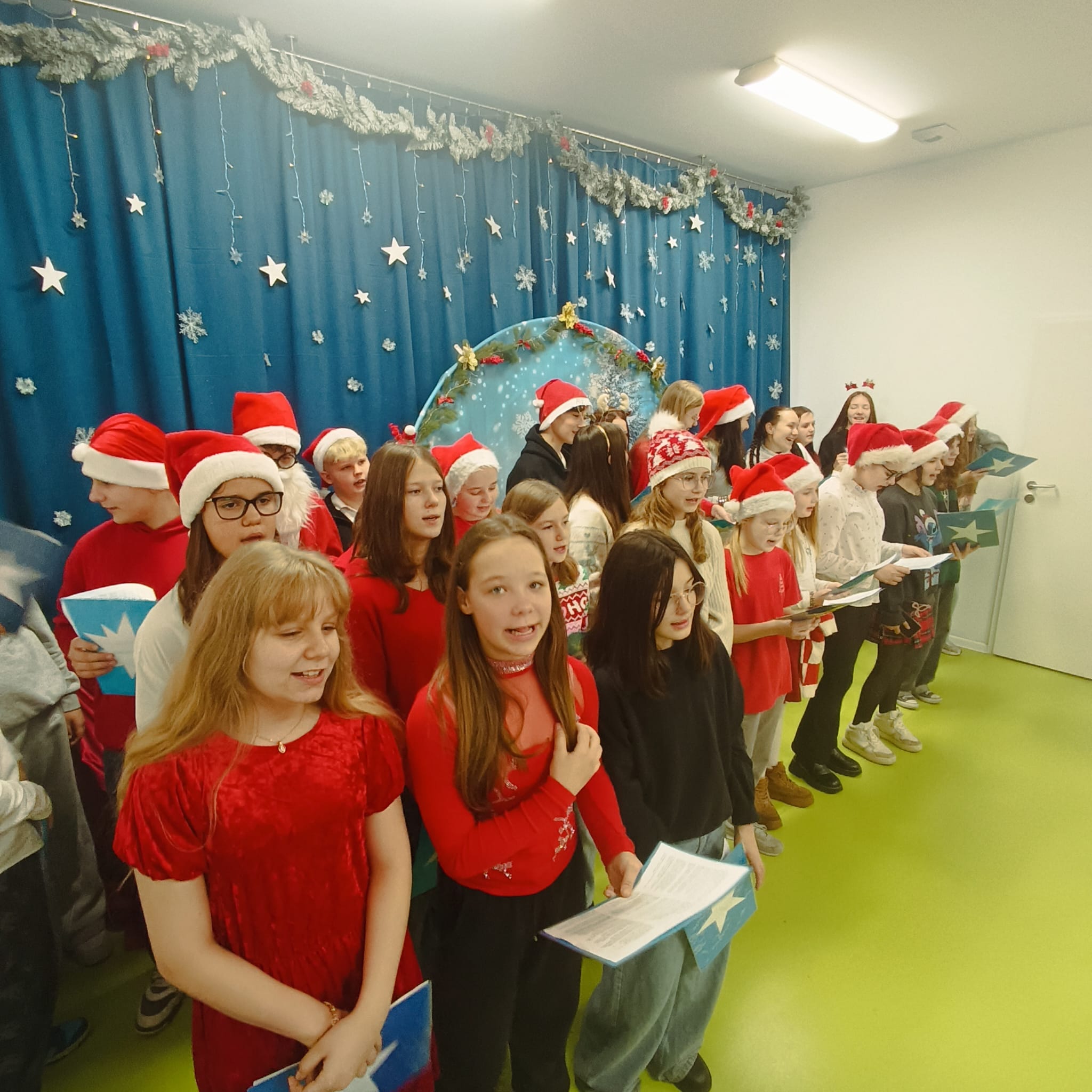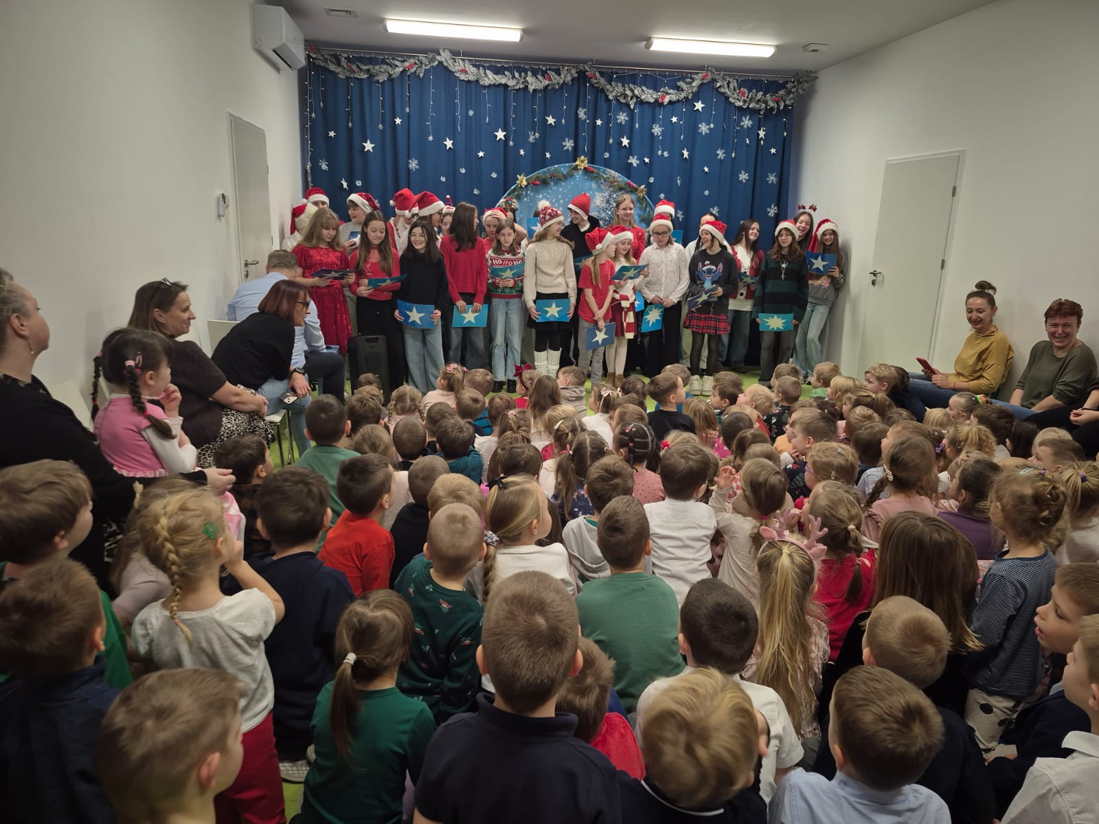 11 grudnia uczniowie naszej szkoły byli gościnnie w pobliskim przedszkolu ‘Słoneczko” by wspólnie z przedszkolakami zaśpiewać najpiękniejsze polskie kolędy. 🎶✨
