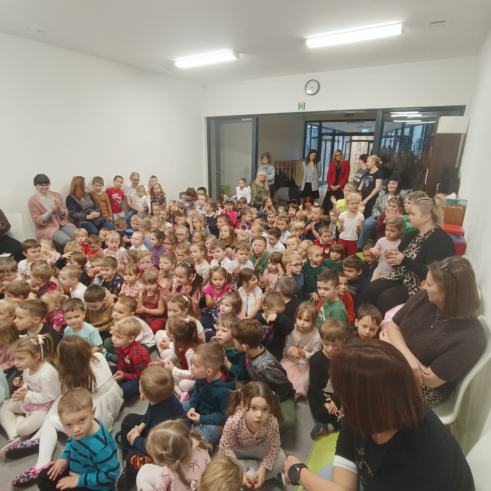 Wspólne śpiewanie stworzyło wyjątkową, pełną radości atmosferę, a najmłodsi z dużym zainteresowaniem słuchali występów i chętnie włączali się do świątecznej zabawy.