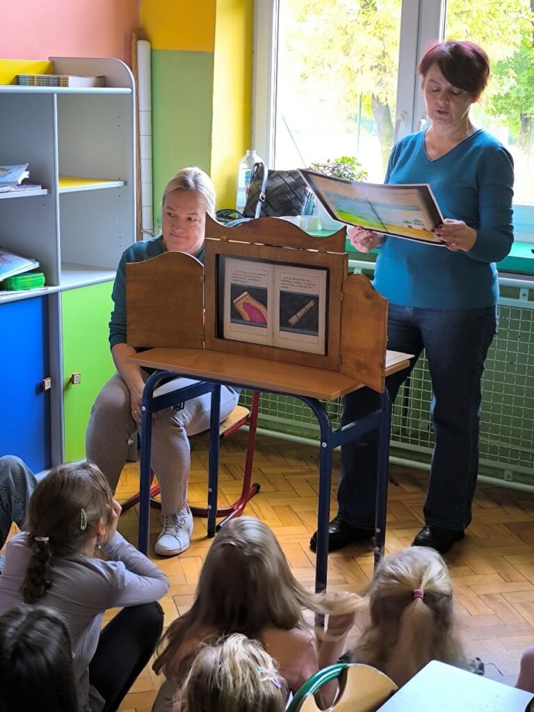 W ramach współpracy międzybibliotecznej, 08.10.2025 gościliśmy w klasie II a przedstawicieli Biblioteki Pedagogicznej w Katowicach filia Sosnowiec. Podczas tych cyklicznych spotkań uczniowie mogą poznawać magię papierowego teatru. Kamishibai można porównać do wędrownego teatru marionetkowego, w którym miejsce lalek zajmują obrazy. Artystów zajmujących się tą sztuką nazywa się kamishibaiyami.