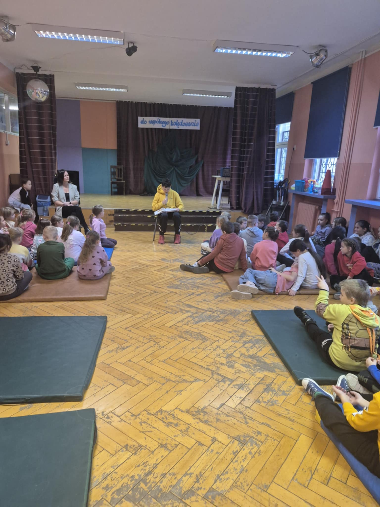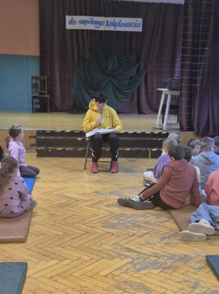 25 listopada 2025r odbyła się w naszej szkole po raz drugi akcja czytelnicza zainicjowana przez opiekunów SU klas I –III, którą w tym miesiącu przeprowadził Piotr z klasy VII a, który zaprezentował baśń pt ,,Baśń o  bohaterskim krawczyku” z wyboru baśni ,,Księga najpiękniejszych baśni”