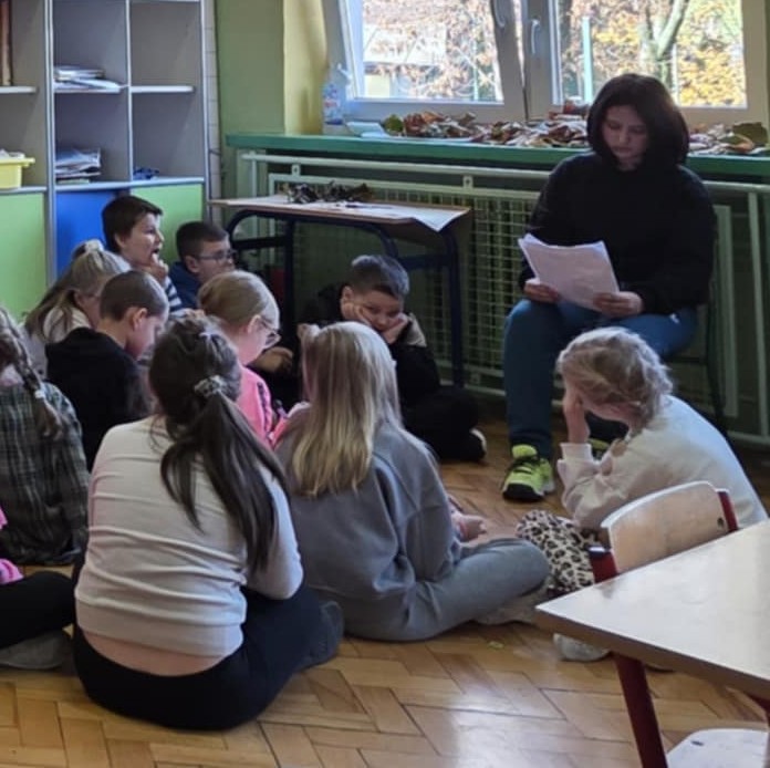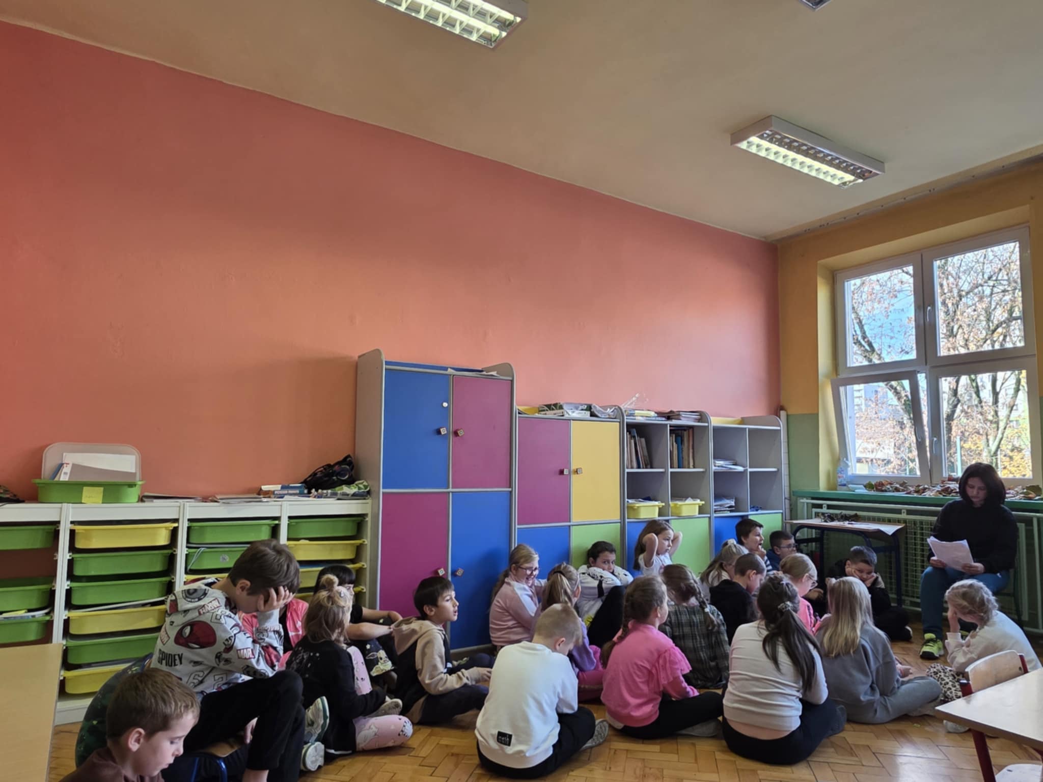 29 października 2025 r. odbyła się w naszej szkole po raz pierwszy akcja czytelnicza zainicjowana przez opiekunów SU klas I –III. Akcja kierowana do najmłodszych uczniów pod hasłem „Starsi czytają młodszym”. Jej celem jest propagowanie czytelnictwa wśród dzieci. Czytanie to najlepszy sposób uczenia się, jest dla umysłu tym, czym gimnastyka dla ciała. Akcję czytania dzieciom  przeprowadziły Justyna z klasy VII a oraz Paulina z klasy VI a, które zaprezentowały baśń pt. Dzielny ołowiany żołnierzyk”.