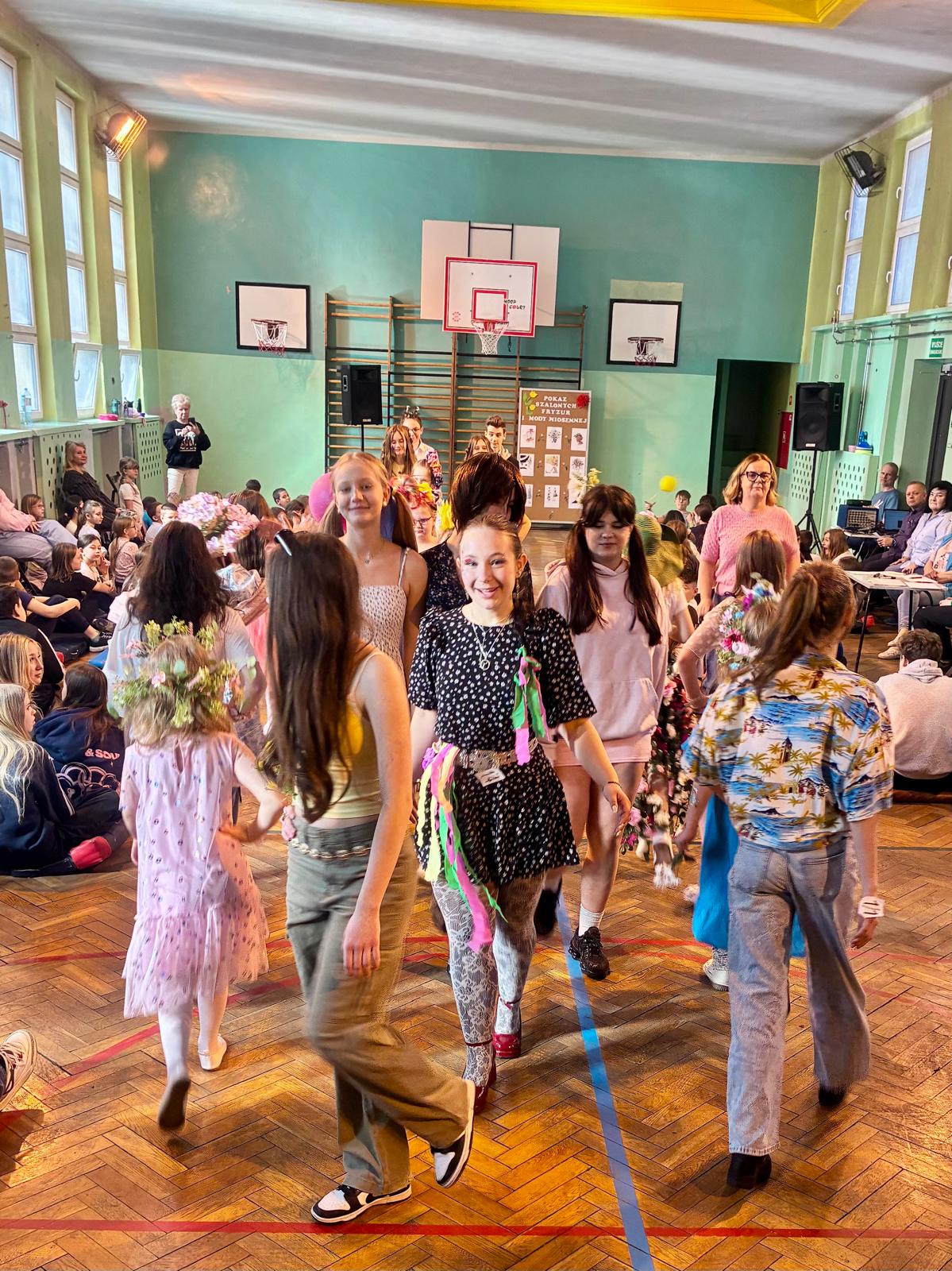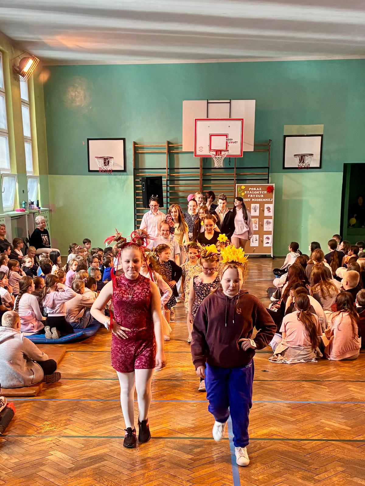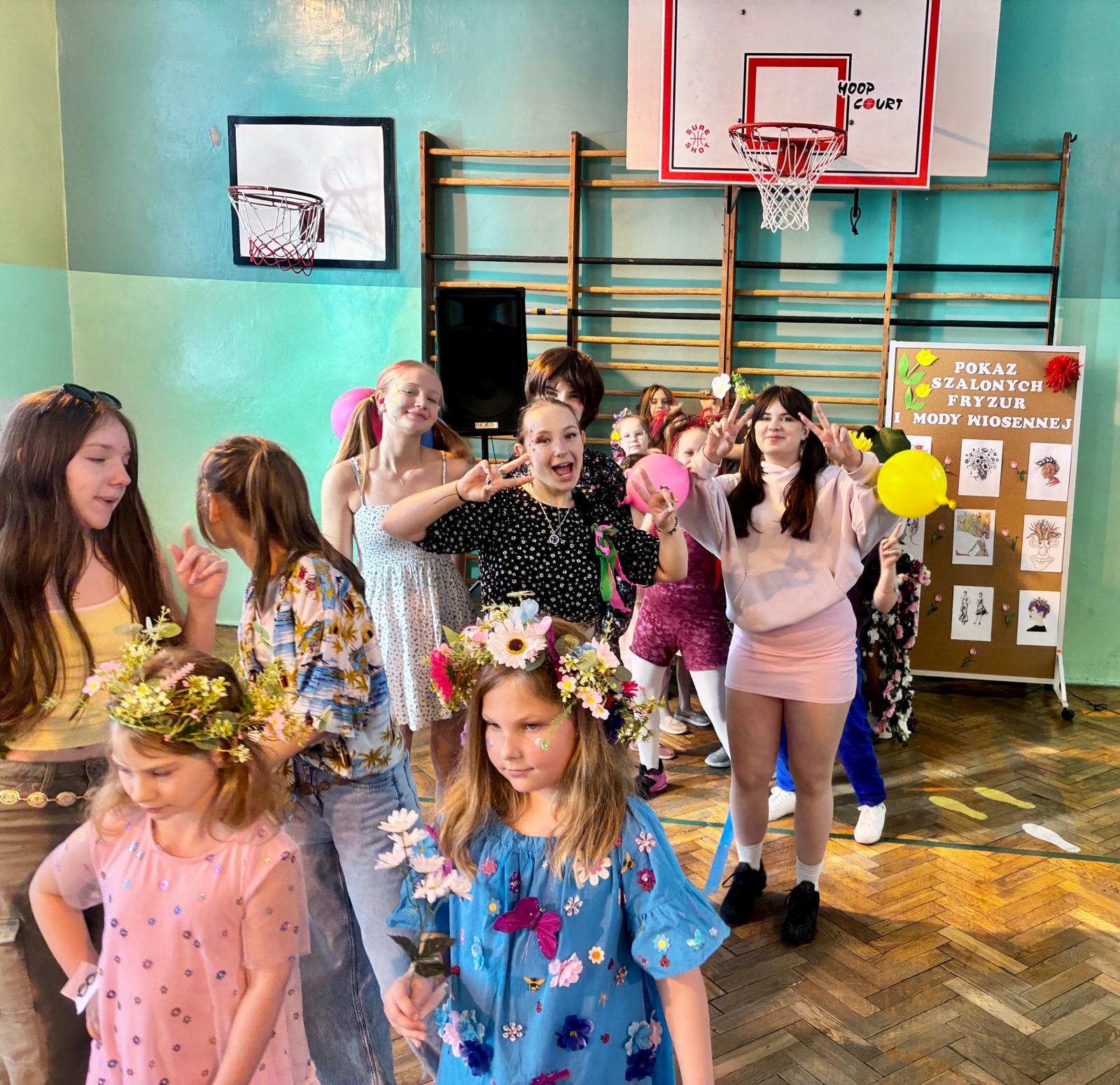 Dnia 23 marca 2026 roku, wraz z nadejściem długo wyczekiwanej wiosny, nasza szkoła zamieniła się w prawdziwą krainę kolorów, kreatywności i fantazji! Z tej wyjątkowej okazji odbył się niezwykły Pokaz Szalonej Fryzury oraz Pokaz Mody Wiosennej, zorganizowany przez opiekuna SU klas I – III p. Renatę Smoleń oraz pedagoga szkolnego p. Marzenę Bańkę. To wydarzenie okazało się absolutnym hitem – prawdziwym strzałem w dziesiątkę! Nikt nie spodziewał się aż tak ogromnego zaangażowania i tylu niesamowitych pomysłów. Na głowach uczniów pojawiły się prawdziwe dzieła sztuki – pełne kolorów, brokatu, warkoczyków, ozdób. Nie zabrakło również emocjonującego pokazu mody wiosennej. Uczniowie zaprezentowali się w niezwykle kreatywnych stylizacjach inspirowanych wiosną. Na szkolnym „wybiegu” pojawiły się stroje pełne kwiatów, barwnych dodatków, motywów przyrodniczych oraz lekkich, wiosennych kolorów. Nie zabrakło również oryginalnych pomysłów i własnoręcznie wykonanych elementów garderoby.